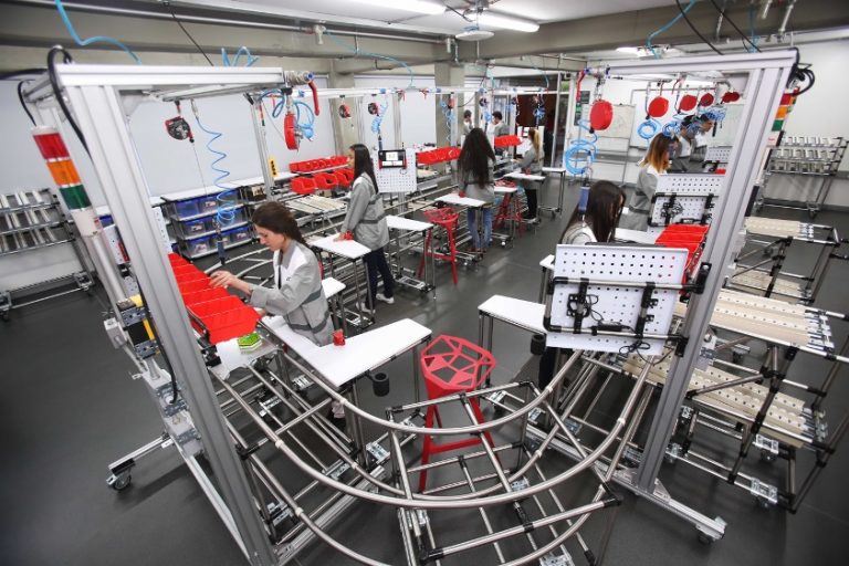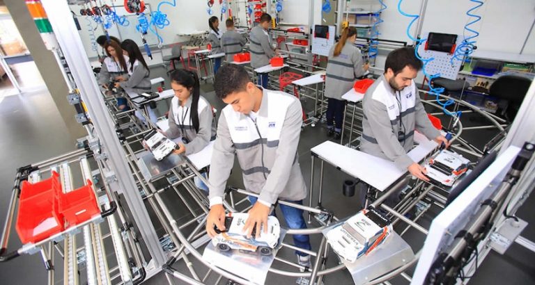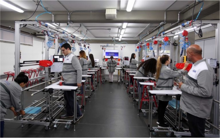 El entorno de F LAB permite a los estudiantes trabajar como si estuvieran en una fábrica real. Cuentan con tecnología de punta, maquinaria y herramientas propias del entorno industrial, permitiendo una experiencia inmersiva de alto valor educativo.